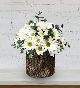 Sevdiğiniz insanlara hediye vermek veya duygularınızı iletmek istediğinizde bunun en etkili ve anlamlı yollarından birisi de çiçek hediye etmektir. Aşkın temsilcilerin olan, nazlı çiçeği papatya ile her ana anlam kazandırılabilir. Zarif ve iç açıcı güzelliyle birlikte muhteşem kokusuyla saflığın ve masumiyetin çiçekte can bulmuş hali olan beyaz papatyayla sevdiklerinize hoş bir sürpriz yapabilirsiniz. Ahşap kütük tasarımına sahip aranjmanla sevgilinizin kalıcılığını vurgulayabilirsiniz. Güneşli bir günde kırlarda sizleri ve sevdiklerinizi gezintiye çıkaracak sıcacık hislere kavuşturan, doğal ahşap kütük papatya aranjmanı ile duygularınızı ifade edebilirsiniz. Papatya ve ahşap kütük birlikteliğinden yararlanarak sevginizi en doğal şekilde yansıtabilirsiniz.